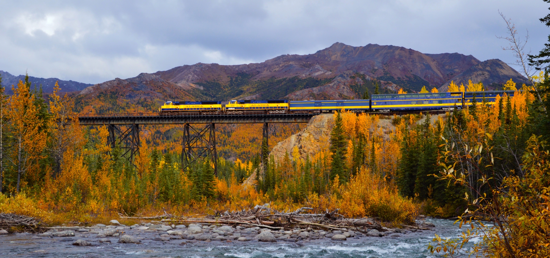 With large panoramic windows reaching all the way up to the ceiling, GoldStar Service is the best way to enjoy Alaska’s stunning scenery in maximum comfort. In addition, guests can use an outdoor, upper-level viewing platform that is perfect for taking photos and videos in the open air. There is a full dining room service on the lower level, and GoldStar passengers can enjoy complimentary meals, soft drinks, and two adult beverages for all those over the age of 21. There is a private car as well as an Alaskan tour guide providing narration during the journey.