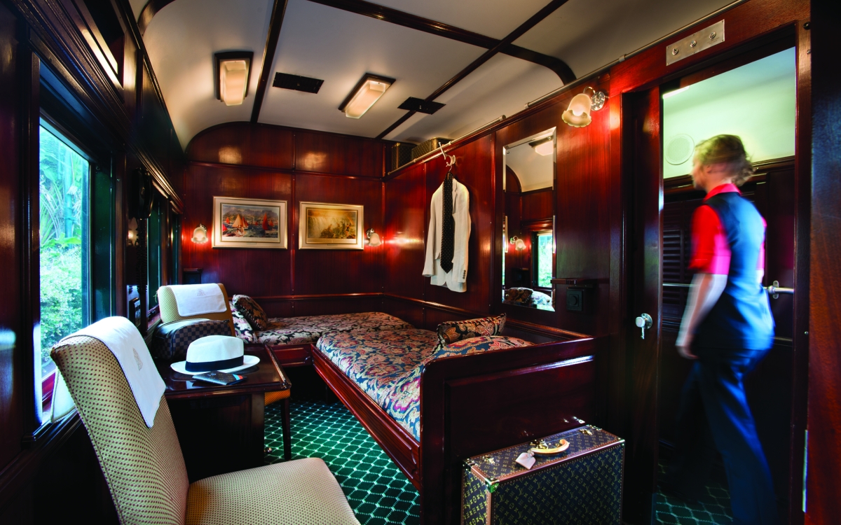 Be hosted in unrivalled style on a timeless adventure with exotic cuisine at white-linen-coated tables in the ornamental dining cars.