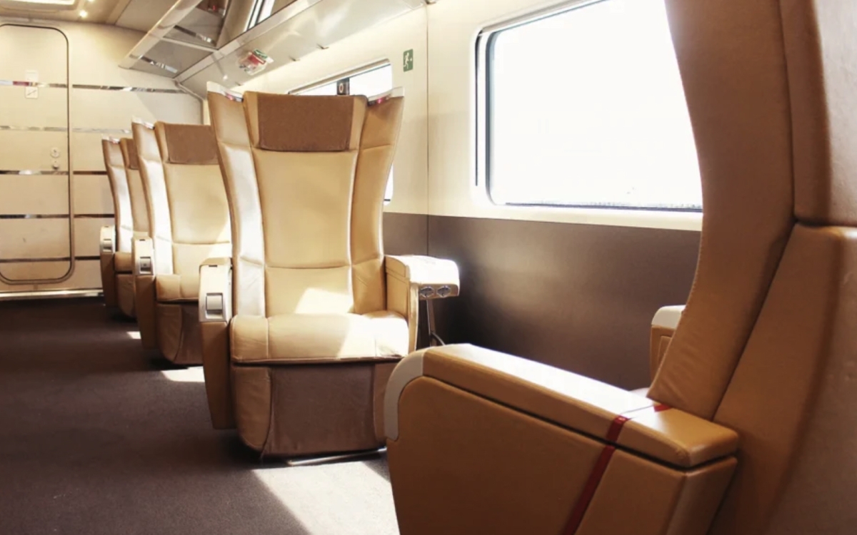 Executive class is both the most luxurious and also the most exclusive class of travel in Italy. Consisting of only 8 to 10 seats, the Executive class is located at one end of the train and has its own dedicated steward, as well as staff on the platform to guide passengers to their seat(s). The comfortable armchair-style seats have an extendable footrest, and can be rotated 180 degrees so can face either direction. A complimentary cold meal with alcoholic and non-alcoholic drinks is included with the ticket, and the extensive menu offers options for different times of day. Executive Class passengers can make use of the FRECCIALounge or FRECCIACLub facilities located in the main Italian train stations prior to travel.
