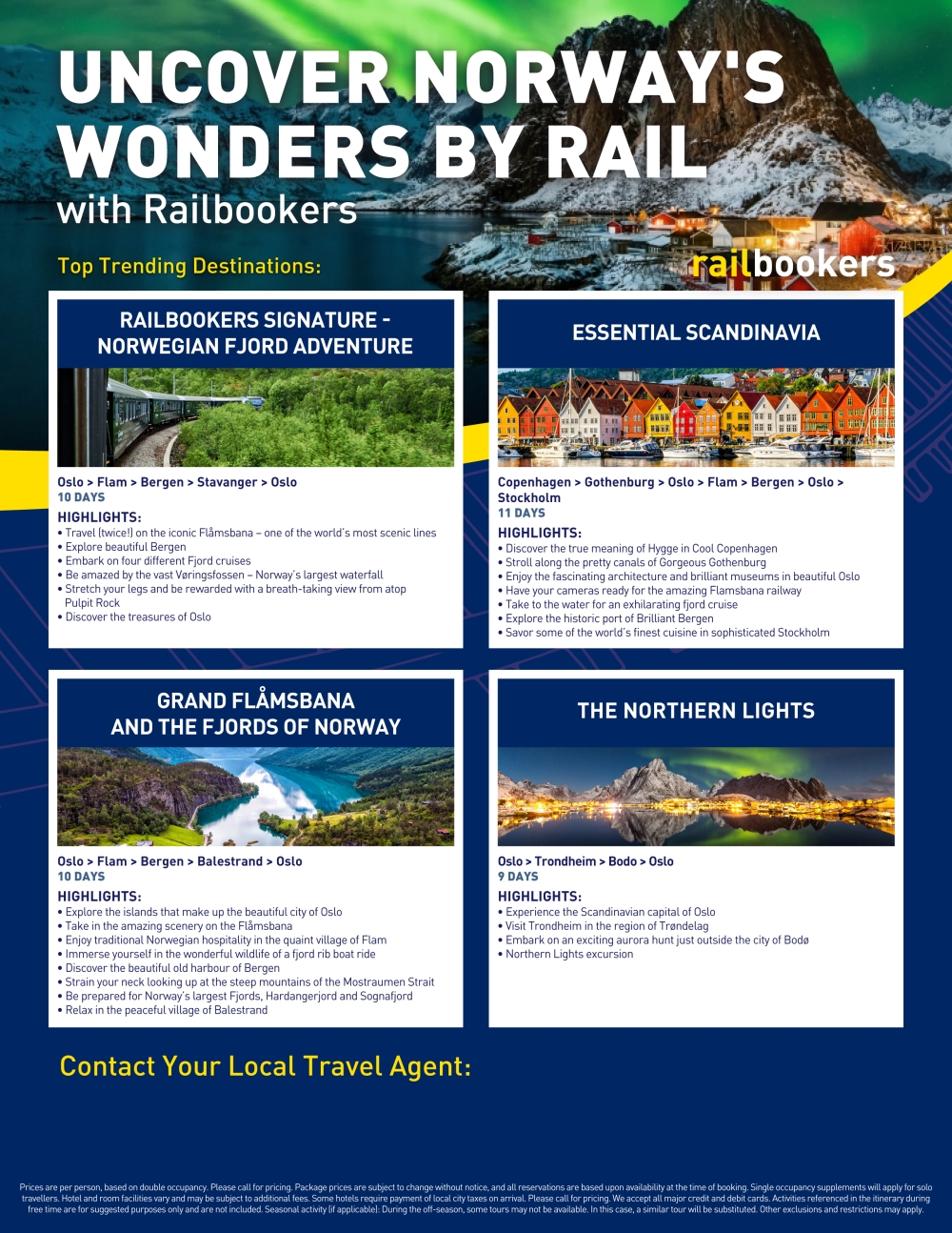 Customisable flyer featuring some of our popular rail holidays to Norway.