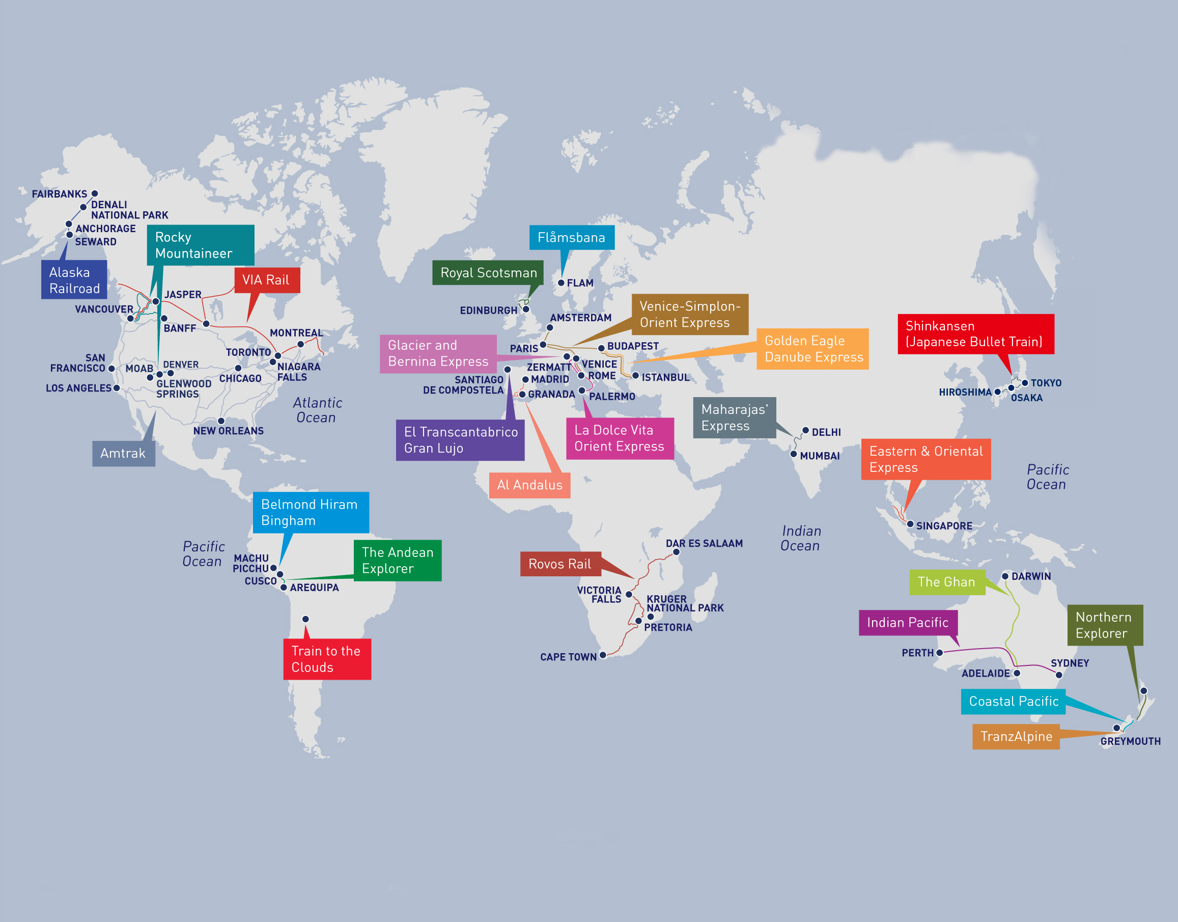 Worldwide Luxury Rail Routes Map